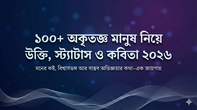 অকৃতজ্ঞ মানুষ নিয়ে উক্তি, স্ট্যাটাস ও কবিতা ২০২৬—১০০+ বাছাই করা ক্যাপশন, অকৃতজ্ঞ মানুষের লক্ষণ, বিশ্বাসভঙ্গ ও মন খারাপের স্ট্যাটাসসহ।