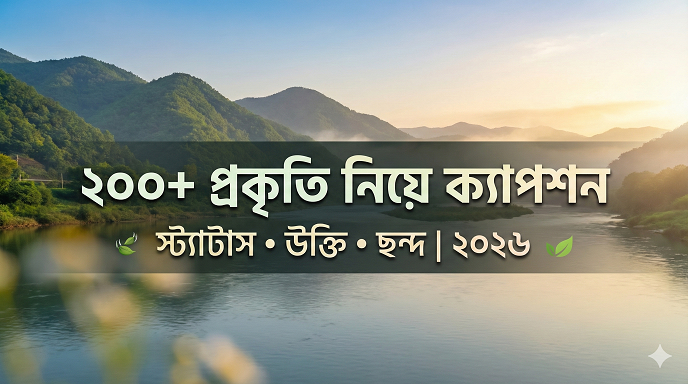 আপনার ছবিটা যদি প্রকৃতির হয়, তাহলে ক্যাপশনও যেন প্রকৃতির মতোই হয়—সিম্পল, সত্যি, আর একটু নরম। আজ থেকে ক্যাপশন খুঁজতে গিয়ে মাথা ঘামাতে হবে না। এই লিস্ট থেকে “প্রকৃতি নিয়ে ক্যাপশন”, “প্রকৃতি নিয়ে স্ট্যাটাস”, “প্রকৃতি নিয়ে উক্তি”, “প্রকৃতি নিয়ে ছন্দ”, “প্রকৃতি নিয়ে কবিতার লাইন”—যেটা দরকার, সেটাই তুলে নিন।