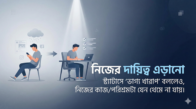 স্ট্যাটাসে “ভাগ্য খারাপ” বললেও, নিজের কাজ/পরিশ্রমটা যেন থেমে না যায়।